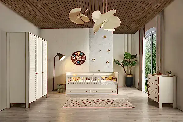 Çocuk odalarında güvenlik ön planda olmalıdır. Dayanıklı malzeme yapısı, yuvarlatılmış köşe detayları ve kaliteli boya kullanımı, çocuklar için güvenli bir ortam oluşturur. Aynı zamanda, odada kullanılan mobilyaların sağlamlığı, enerjik hareketlere dayanıklı olmalı ve uzun ömürlü olmalıdır.